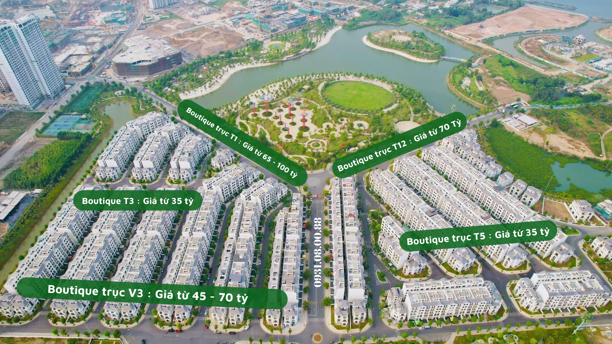 - BOUTIQUE TRỤC ĐƯỜNG V3 : Với diện tích từ 275m - 315m , mức giá trung bình tầm 200tr/m2