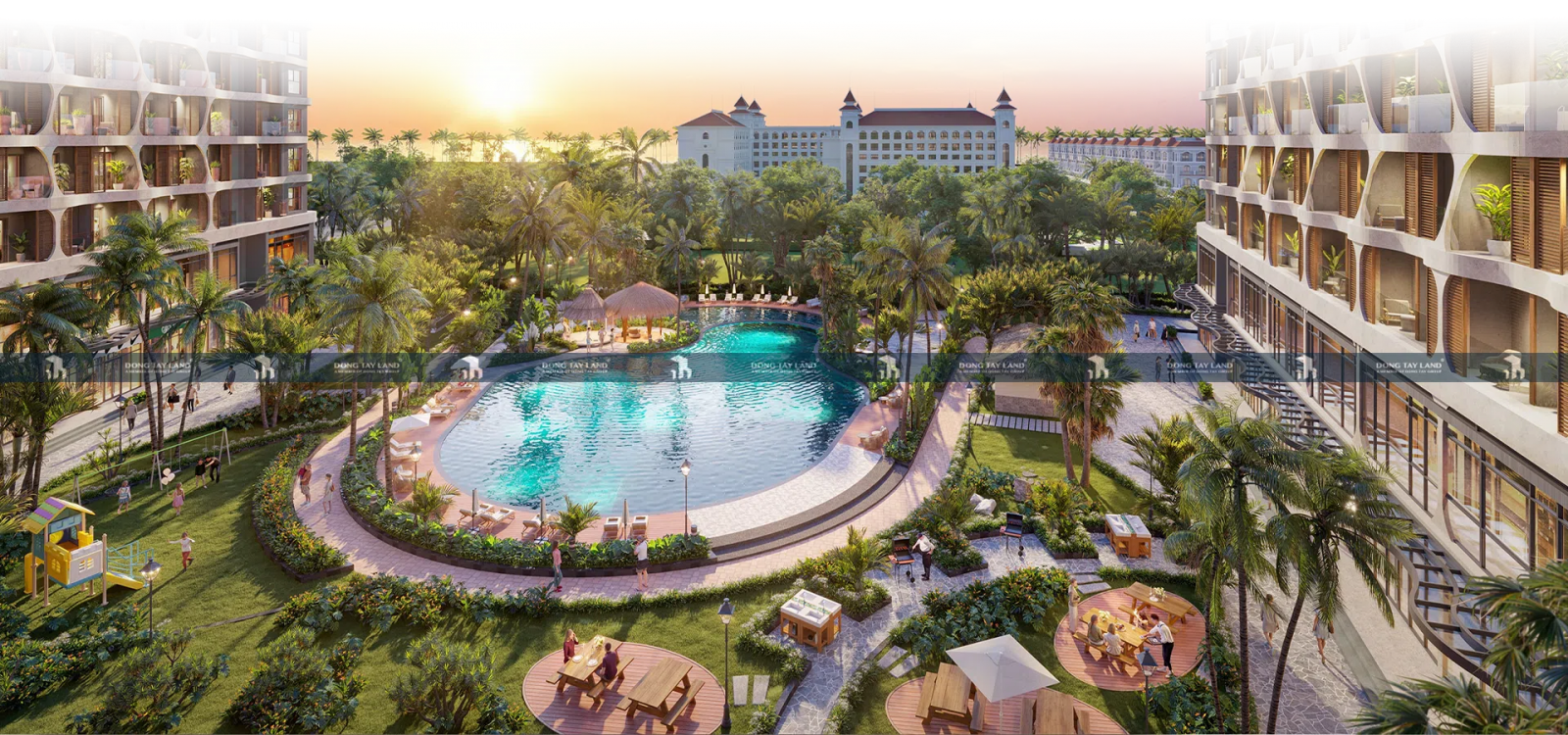Sử dụng các gam màu trung tính làm nổi bật sự sang trọng, đẳng cấp. Lấy cảm hứng từ vùng nhiệt đới, nơi giao hòa giữa biển, trời và thiên nhiên đem đến cho du khách và cư dân sự thư giãn, thoải mái, gần gũi.