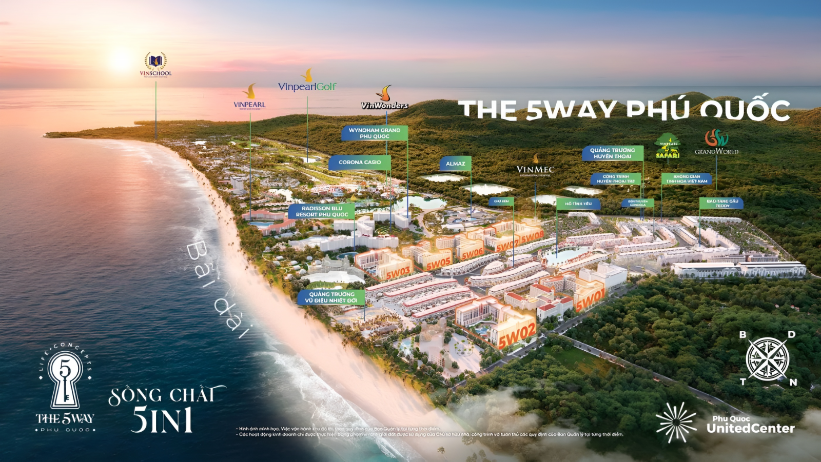 The 5Way Phú Quốc là phân khu căn hộ nghỉ dưỡng do Vinhomes phát triển trong quần thể Phú Quốc United Center tại Bãi Dài, Phú Quốc. Căn hộ có giá bán TỐT nhất Phú Quốc chỉ 1.5 tỷ, dễ mua nhất Phú Quốc chỉ cần 150 triệu ban đầu là đã sở hữu. Vậy nên dự án The 5Way được mệnh danh là căn hộ quốc dẫn đáp ứng mọi nhu cầu an cư, nghỉ dưỡng, đầu tư cho mọi nhóm khách hàng.